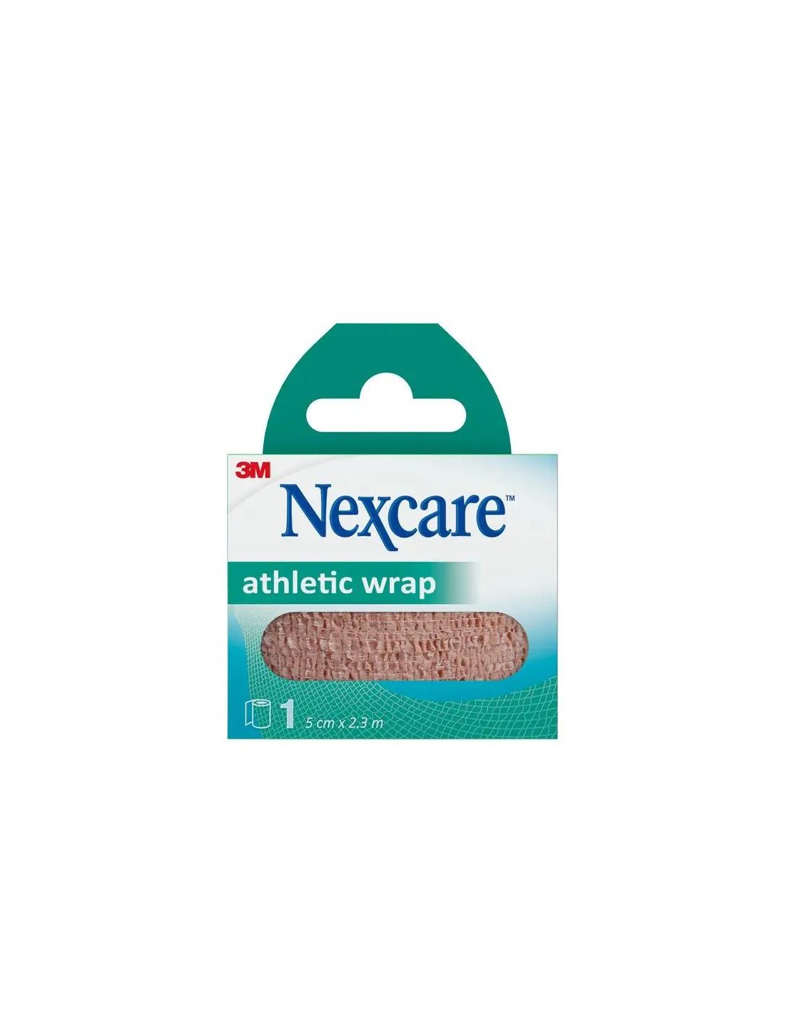 3M Nexcare Athletic Wrap es un vendaje elaborado con tecnología de última generación para ayudar a repeler el agua y evitar que penetre las heridas. La caja contiene un rollo de vendaje de látex de 2.5 m de largo, 5 cm de ancho, 2.5 cm de grosor en color oscuro y sin adhesivos.El material de elaboración es elástico, delgado, transpirable, liviano, puede cortarse al tamaño requerido y no necesita ganchos de cierre pues se adhiere sobre sí mismo. Esta versión ha sido especialmente diseñada para la protección de los deportistas que suelen lesionarse las rodillas, los tobillos o los codos.