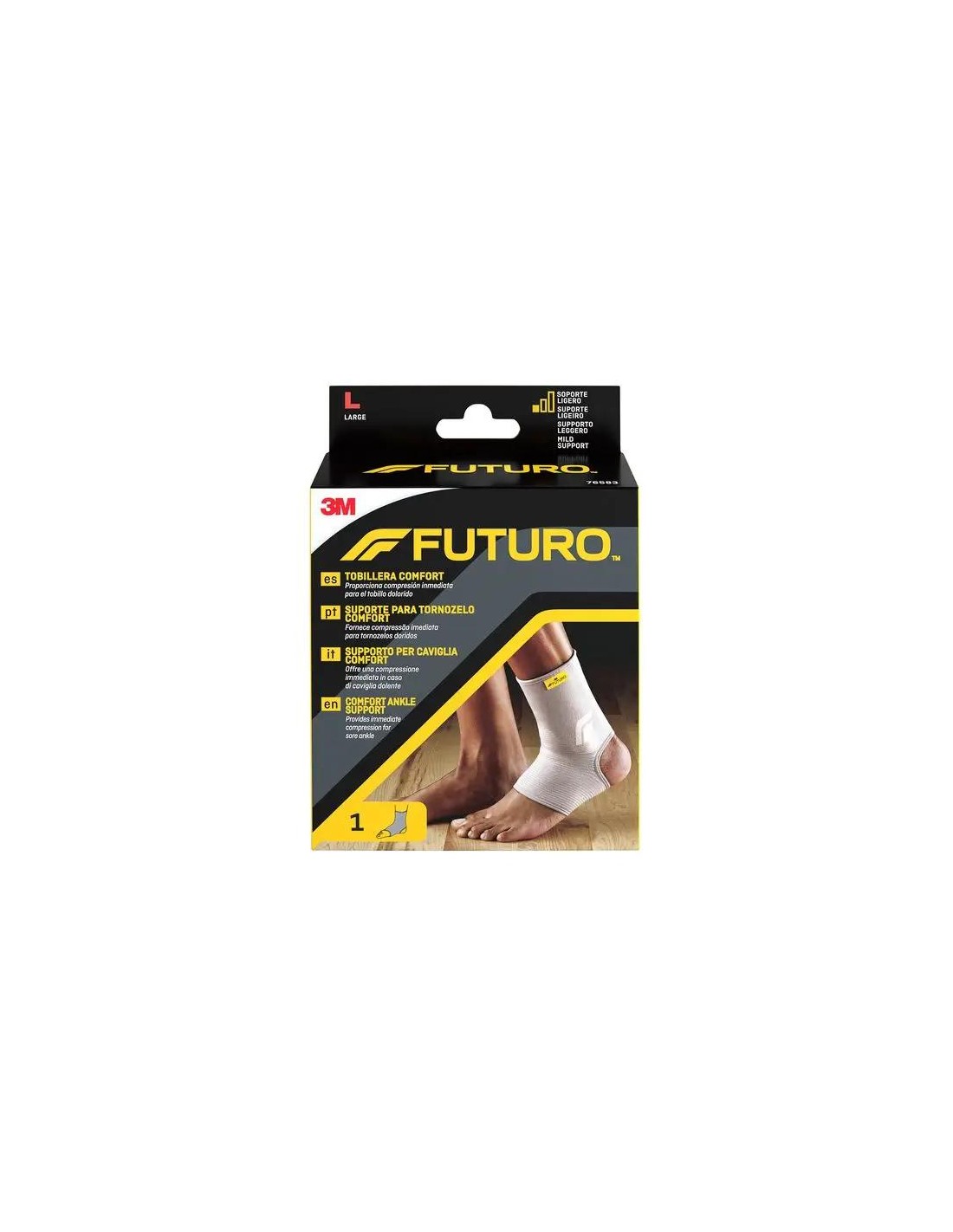 La Futuro tobillera comfort talla grande de 3M se ha diseñado para una compresión rápida de tobillos doloridos, rígidos y lesionados. El complemento aporta un soporte ligero indicado para una actividad de impacto bajo.